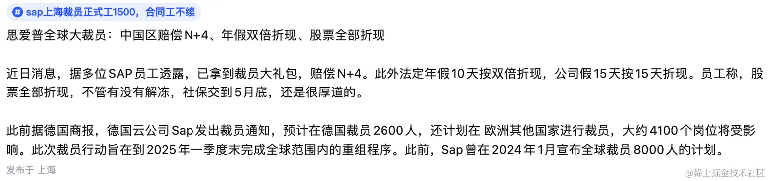最新消息,SAP 宣布全球裁员,中国区(上海)裁员约 1500 名员工。