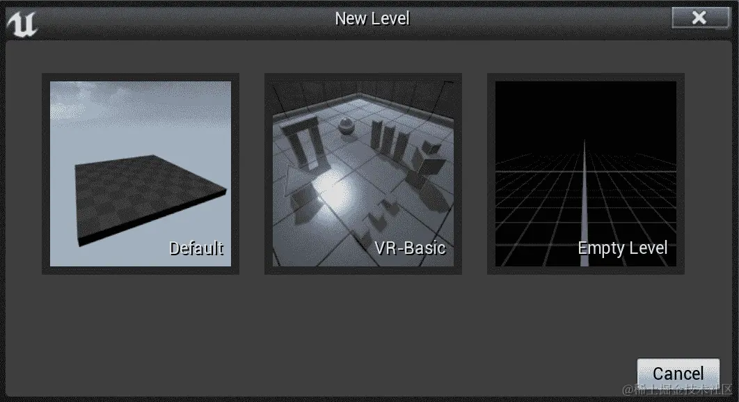 - 然后可以在默认、VR-Basic 和空级别之间进行选择。我认为选择空级别是个好主意: