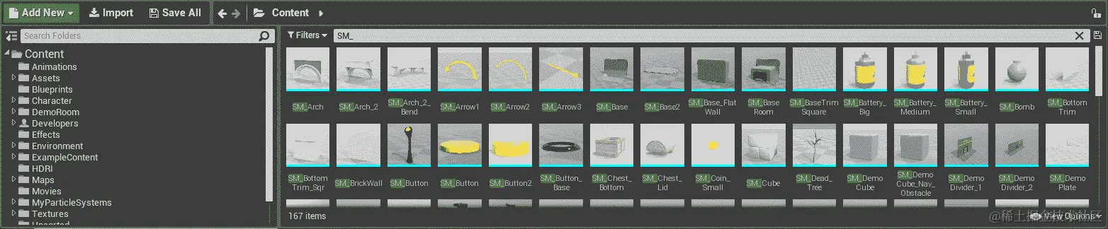 向场景添加对象就像从内容浏览器选项卡中拖放它们一样简单,如下所示: