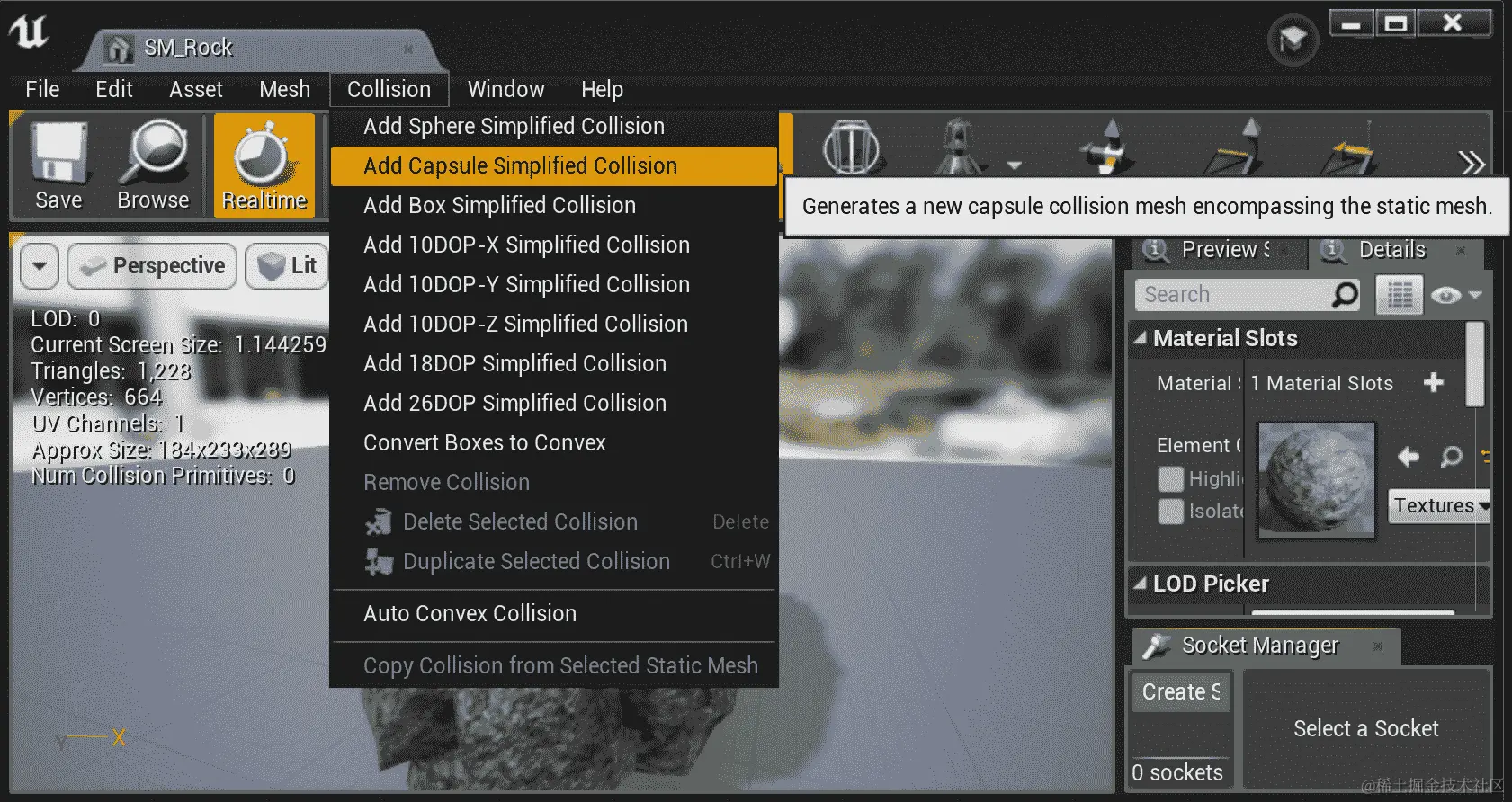 - 转到碰撞菜单,然后点击添加简化碰撞胶囊: