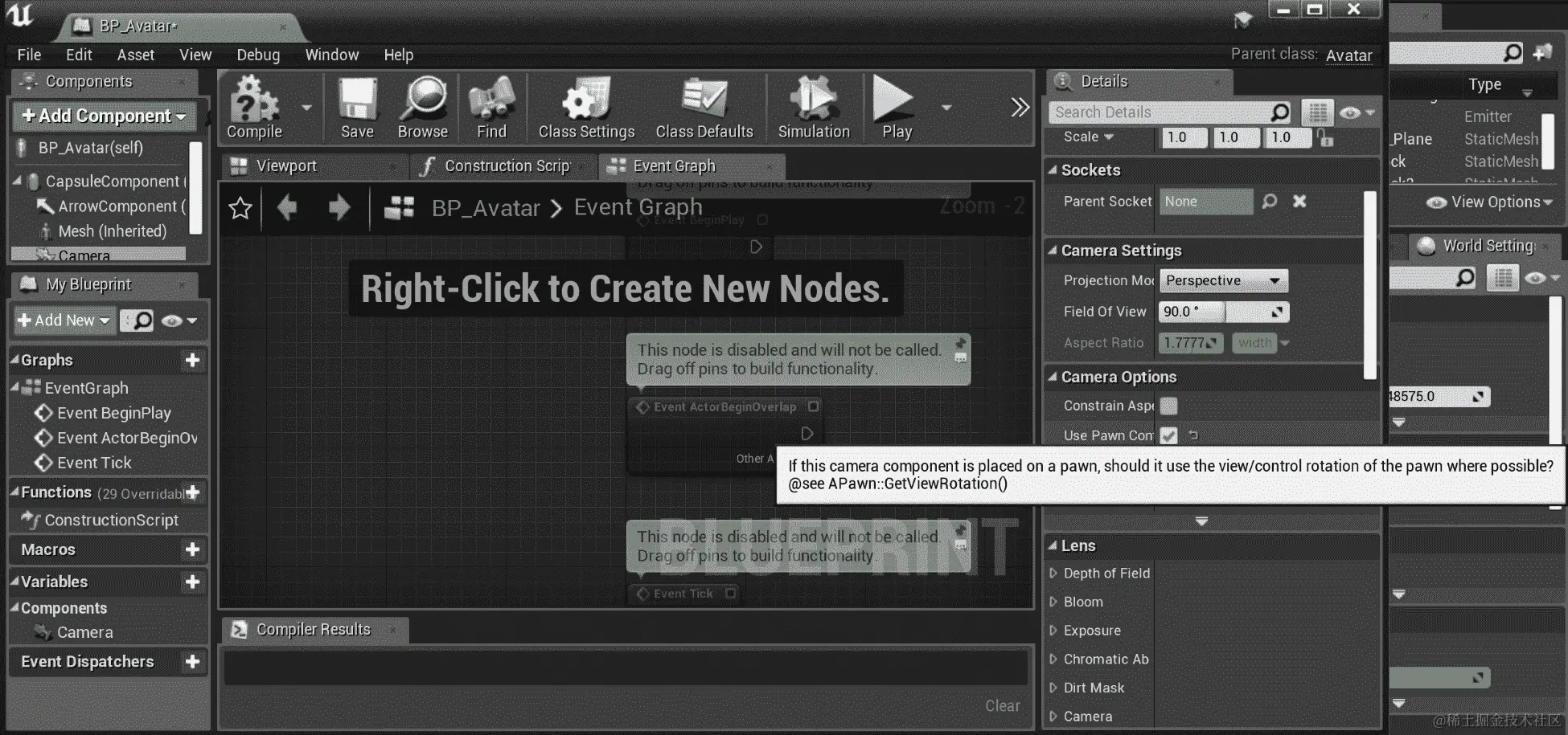 AAvatar::Pitch()函数(y 轴)以将输入路由到 HUD 而不是Avatar。 -