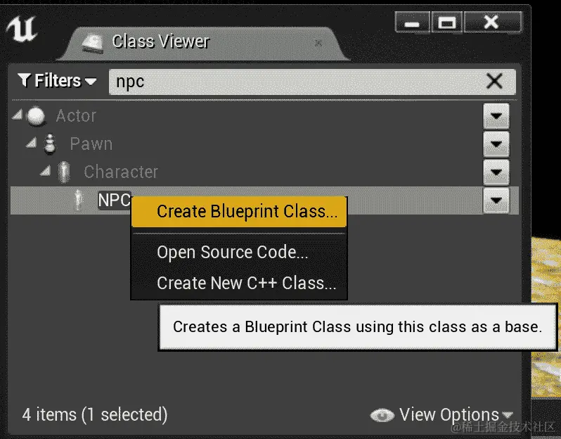 为了创建玩家的屏幕表示,我们需要从虚幻中的ACharacter类派生。