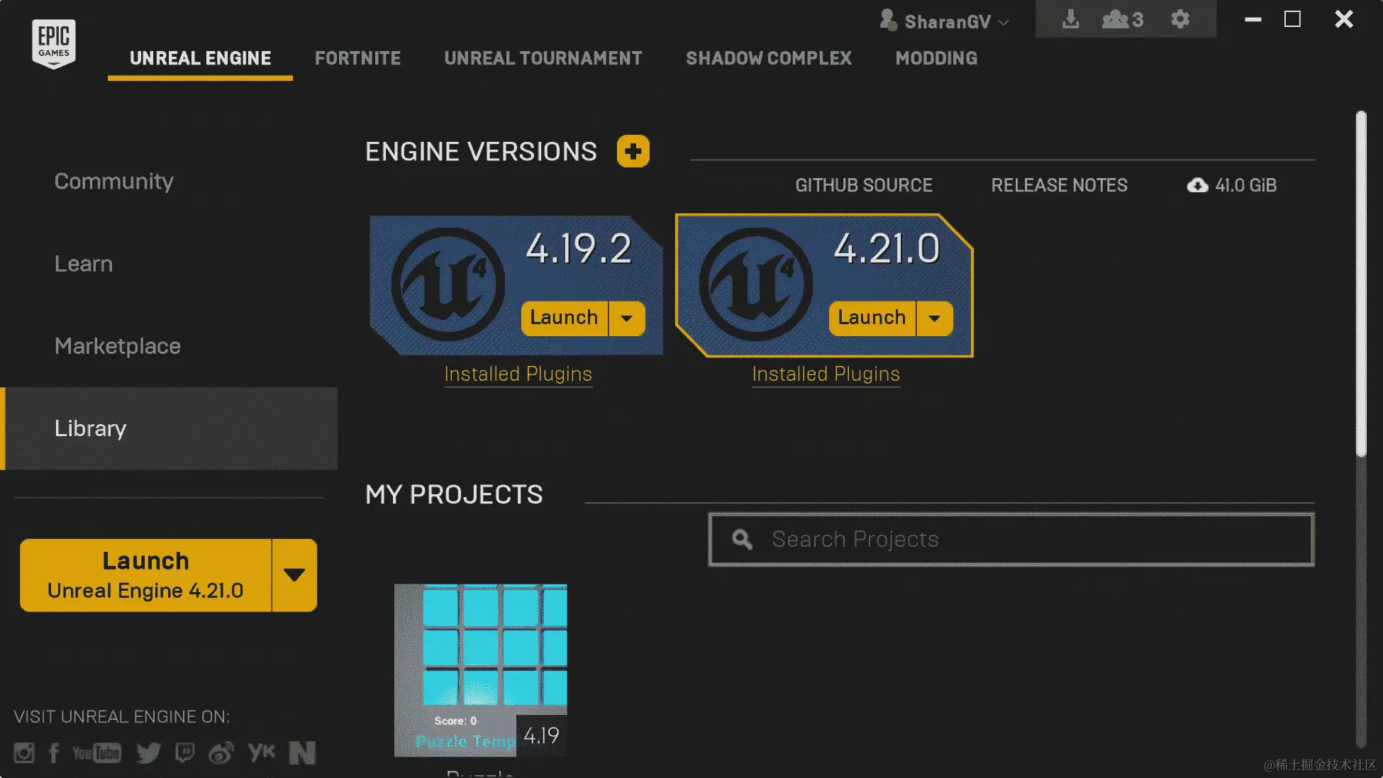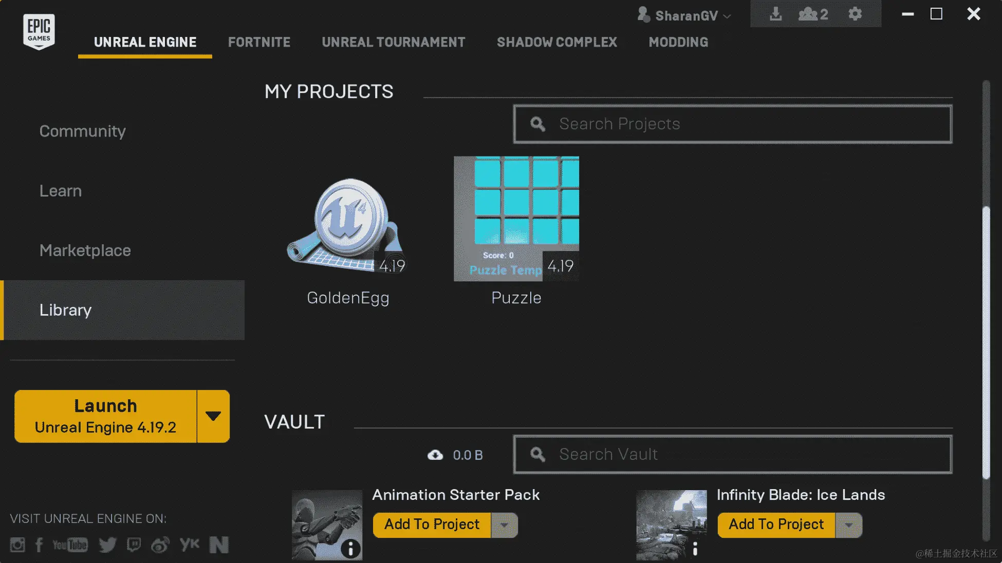 - 创建一个新的空白 UE4 项目以开始。要做到这一点,在虚幻启动器中,点击最近的引擎安装旁边的启动按钮,如下截图所示: