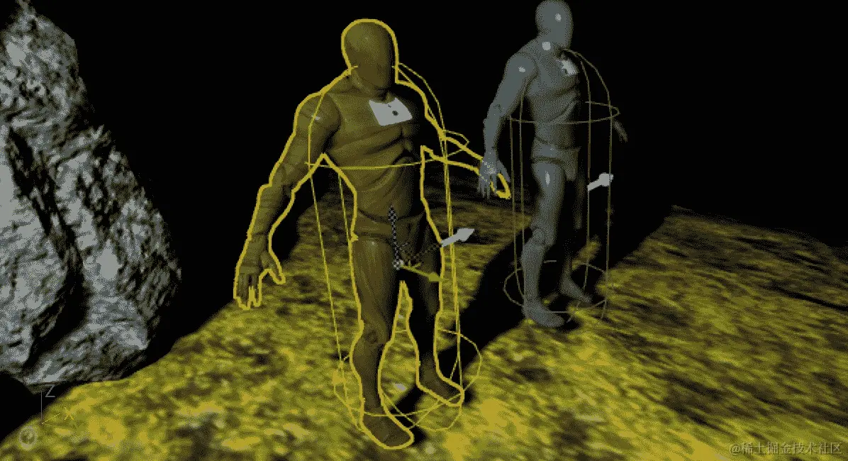 默认碰撞胶囊(左)和手动调整大小的版本(右)