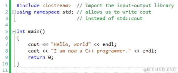 我们将从编写非常简单的 C++程序开始。我知道您现在想要开始玩您完成的游戏。但是,您必须从头开始才能达到目标(如果您真的想要,可以跳到第十三章*,* 咒语书,或打开一些示例来感受我们的方向)。