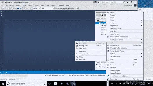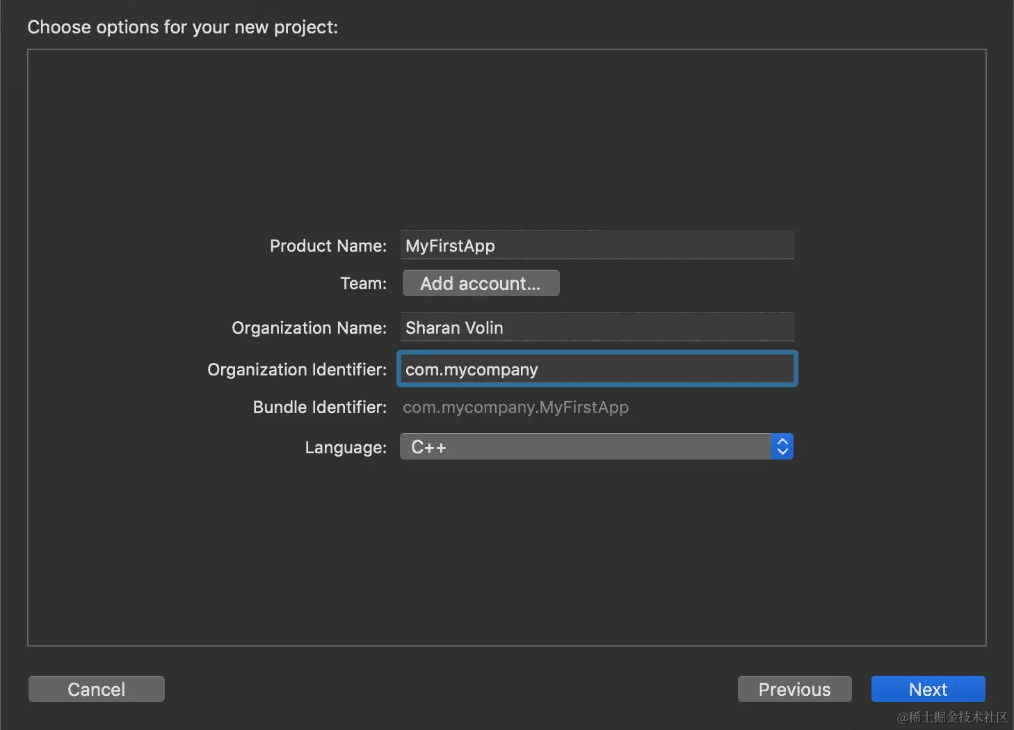 设置一个新项目(在 Visual Studio 或 Xcode 中)