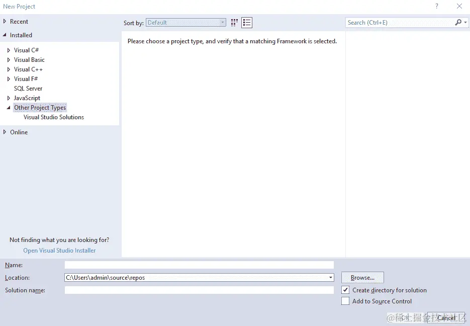 请注意底部有一个带有“解决方案名称”文本的小框。一般来说,Visual Studio 解决方案可能包含许多项目。但是,本书只使用单个项目,但有时您可能会发现将许多项目集成到同一个解决方案中很有用。