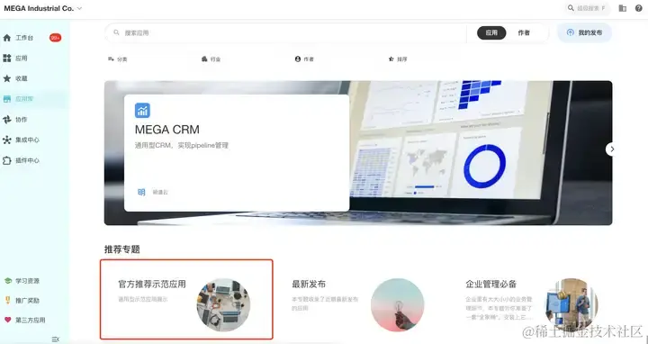 在应用库首页,增加了【官方推荐示范应用】专栏,用户可以直接进入专栏,或者在搜索框输入应用关键词检索后,进行预览和安装操作。