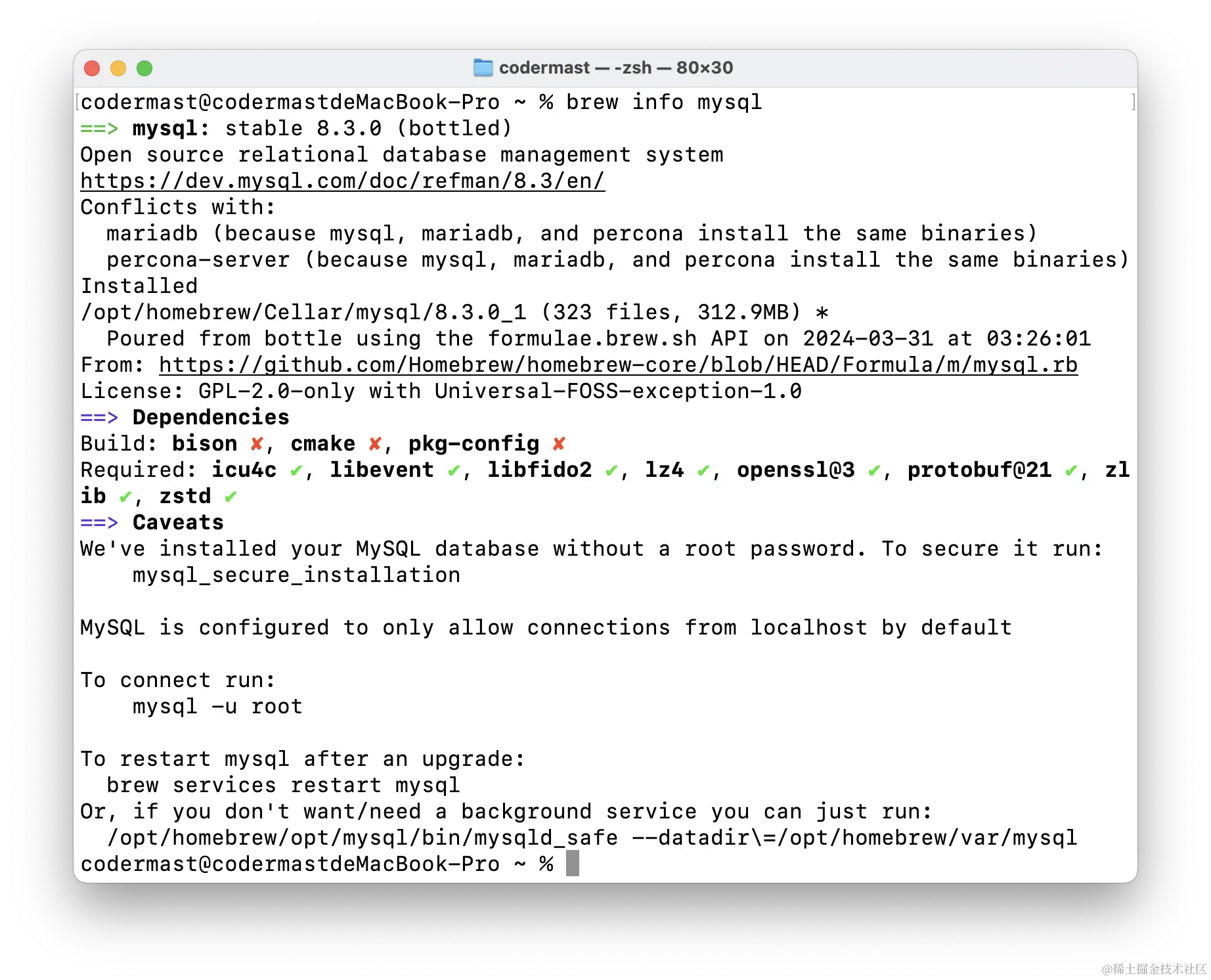 brew info mysql