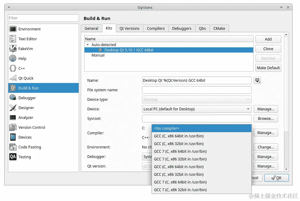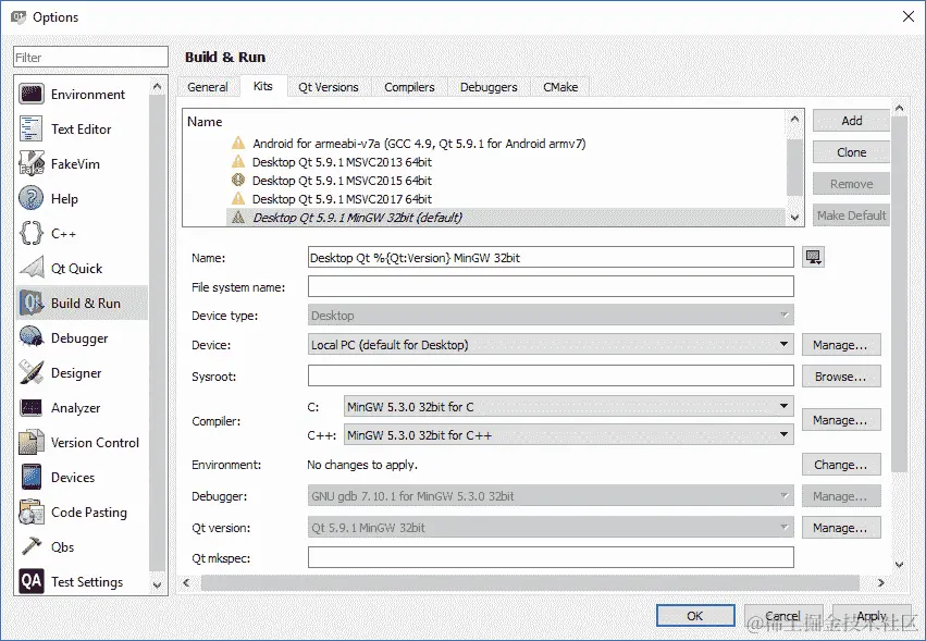 要了解如何在 Qt 中设置不同调试器的详细信息,请访问以下链接:
