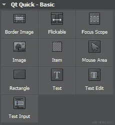 让我们来看看 Qt Quick Designer 默认提供的 QML 类型。首先,这是基本类别下的 QML 类型: