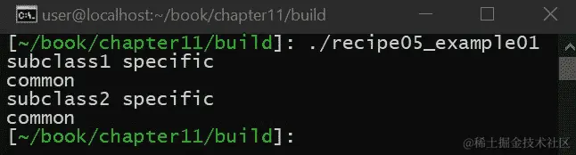 让我们从之前定义的基类开始。它提供了一个foo()函数作为纯虚函数(即,子类必须实现此函数),同时还提供了自己的通用逻辑。然后我们可以创建两个子类,如下所示:
