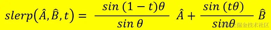 四元数可以以类似的方式进行插值,用于在两个关键帧之间旋转。由于大多数骨骼动画是通过随时间旋转关节来实现的,因此在四元数之间进行插值将是一个非常常见的操作。