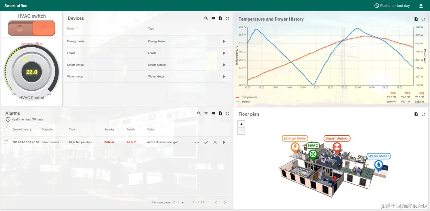 Thingsboard 分为专业版和社区版,社区版是开源的,专业版是收费的。thingsboard 提供了30多个可自定义的小部件,允许为大多数物联网用例构建最终用户自定义仪表板。官网地址:thingsboard.io/
