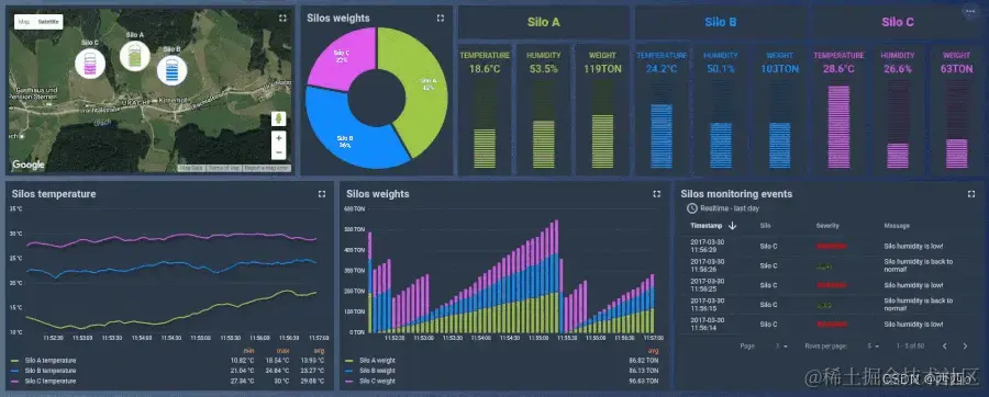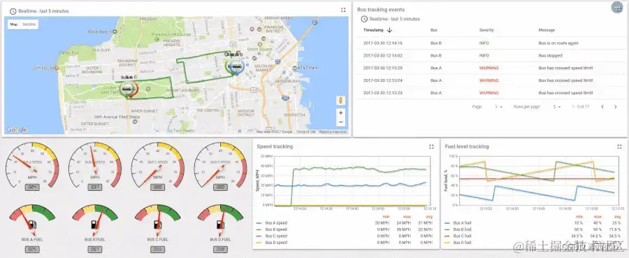 - 数据可视化: 从设备和资产收集并可视化数据。提供了现成的30个可配置小部件,并能够使用内置编辑器创建自己的小部件。内置线图,数字和模拟仪表,地图等等。