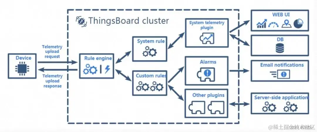 TingsBoard Rule Engine 处理来自设备的信息,并触发称为插件的可配置模块。