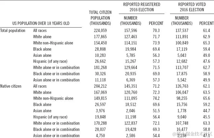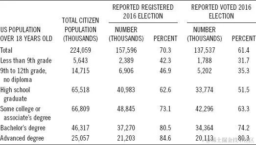 1. 2016 年投票和登记。美国人口调查局。访问日期为 2019 年 2 月 26 日。