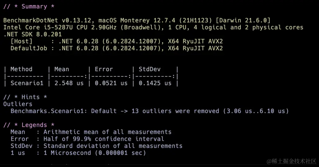 在我比较执行速度时,我必须使用某种基准工具来进行有效的比较。幸运的是,BenchmarkDotNet 已经存在。它适用于控制台应用程序,这正是我们所需要的。