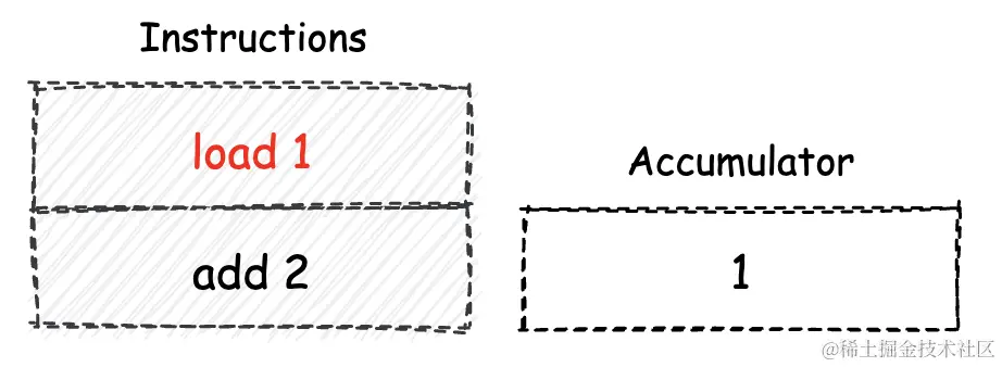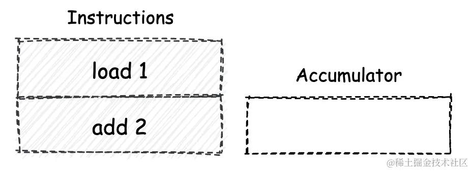 在类似JS中的reduce , 它仅能够使用可存放单一值的累加器寄存器(后简称“累加器”)单元,来作为指令操作数的暂存场所。因此,基于累加器机模型设计的指令一般都仅支持一个操作数。