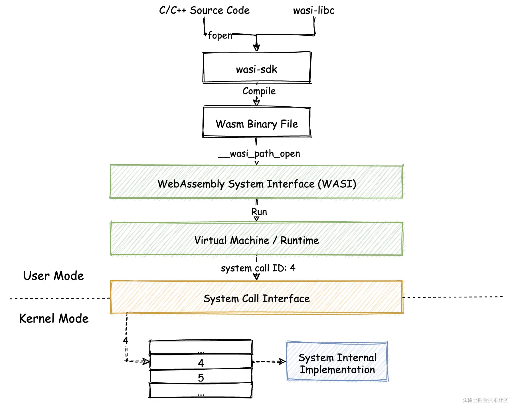 - 使用 Web Worker API 从主线程创建一个工作线程(Worker Thread),用于通过 JavaScript 胶水代码来加载和实例化 Wasm 模块;