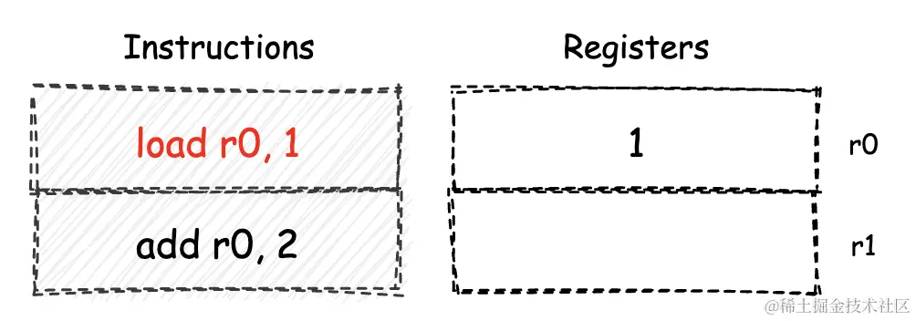 基于这种计算模型的机器,将使用特定的 CPU 寄存器组,来作为指令执行过程中数据的存储和交换容器。