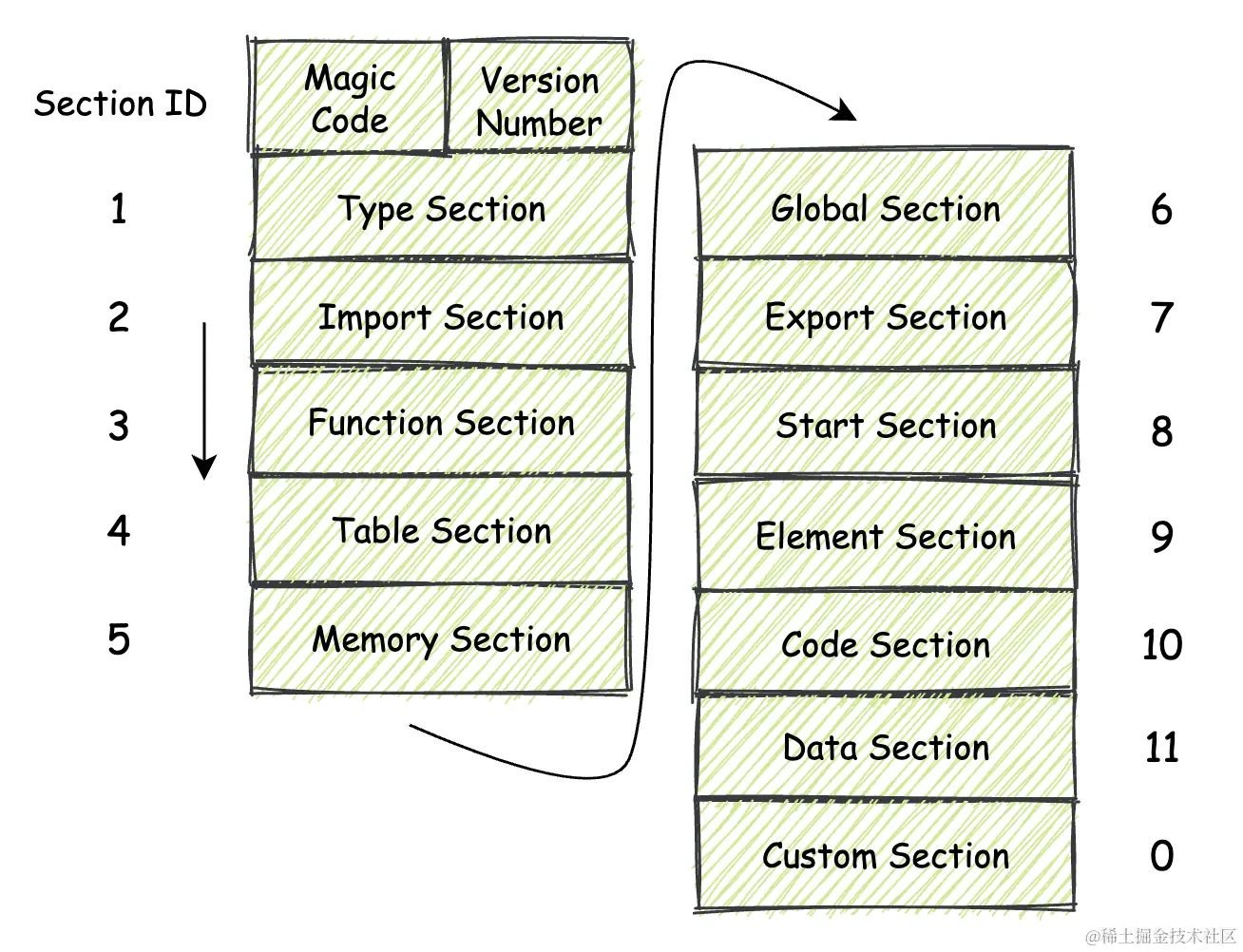 下面这个图是wasm的一些section结构