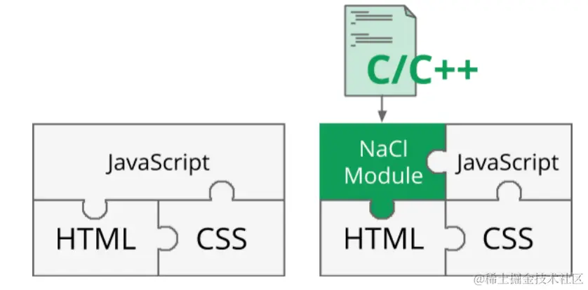 - 开发成本:如果想要将已经存在的C/C++代码库编译到NaCI,需要用一个叫Pepper的库来重写代码
