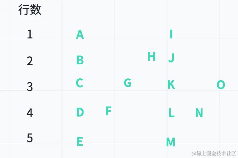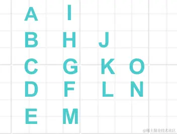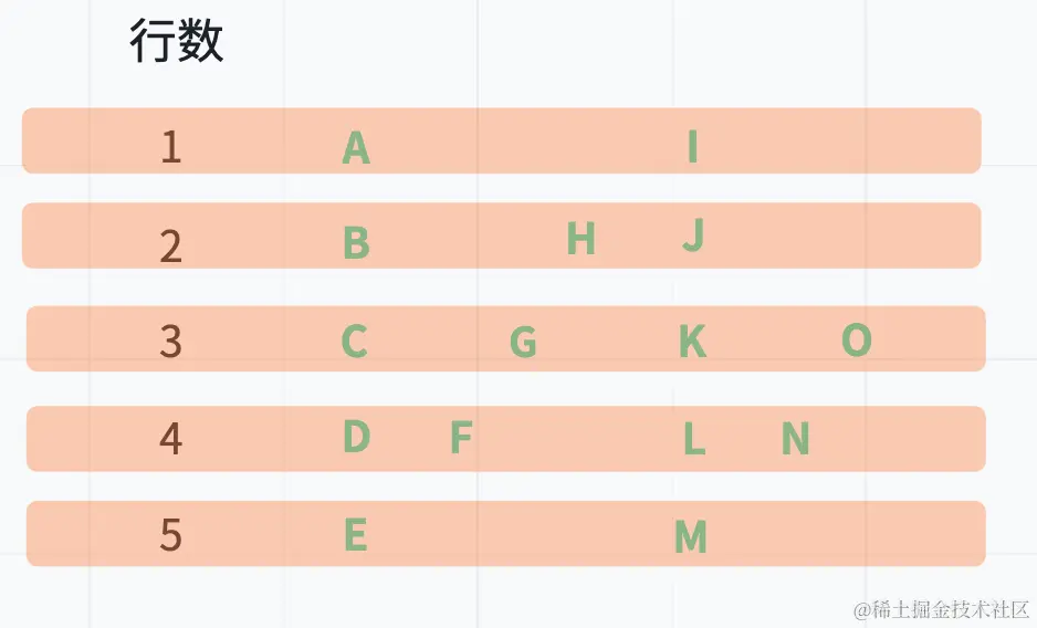 比如输入字符串为 "ABCDEFGHIJKLMNO" 行数为 5 时,排列如下: