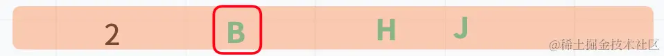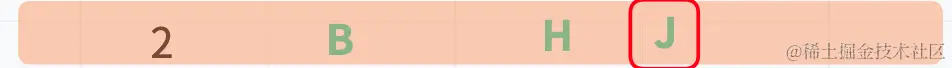 当第二层循环 i = 1时,第二层循环则要所有的字符(),以获取 B、H、J