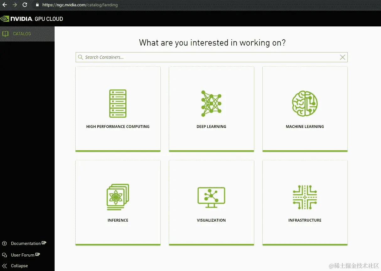 如您所见,容器有六个类别。选择与您相关的类别。NGC 的早期版本要求用户注册,但最近取消了此要求。
