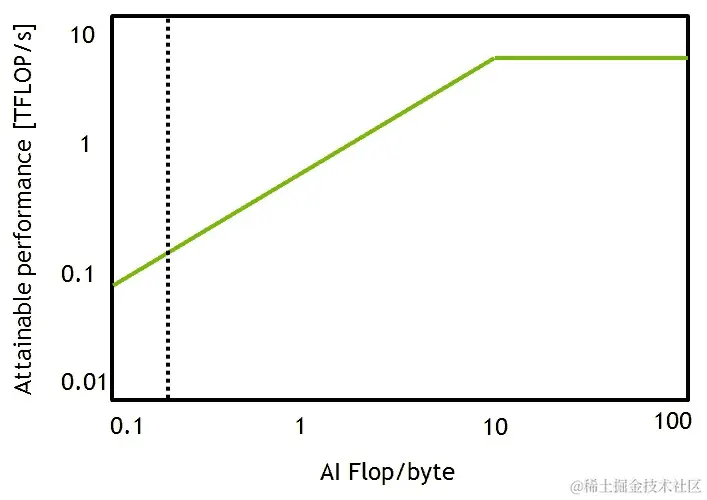 屋顶线模型考虑了应用程序的操作强度。简单来说,这意味着每个操作都是从主存储器(DRAM)中的字节进行的。虽然还有更复杂的模型考虑了缓存到处理器的传输,但屋顶线模型更专注于从 DRAM 到缓存的数据传输,因此更专注于 CUDA 核心在特定 GPU 架构上所需的 DRAM 带宽。