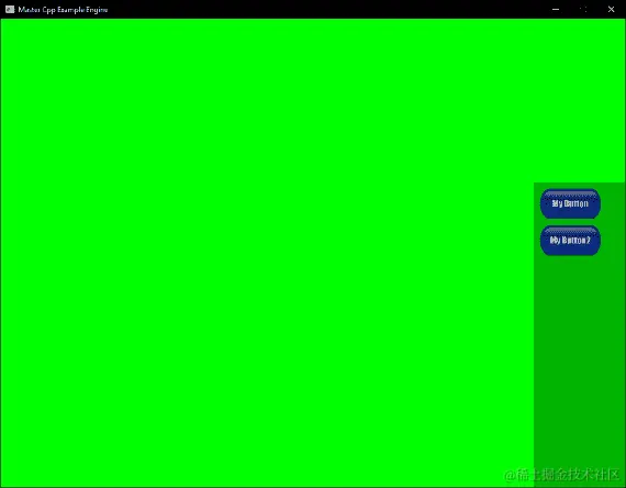 面板创建并添加到 GUI 实例的面板列表后,我们将一个按钮添加到该面板。为此,我们首先创建一个临时变量来保存我们想要为此按钮加载的纹理。然后我们创建按钮本身。我们再次使用本章前面构建的结构。我们传入标签My Button和刚刚加载的纹理。完成后,我们调用AddGUIElement()函数并将按钮添加到面板:
