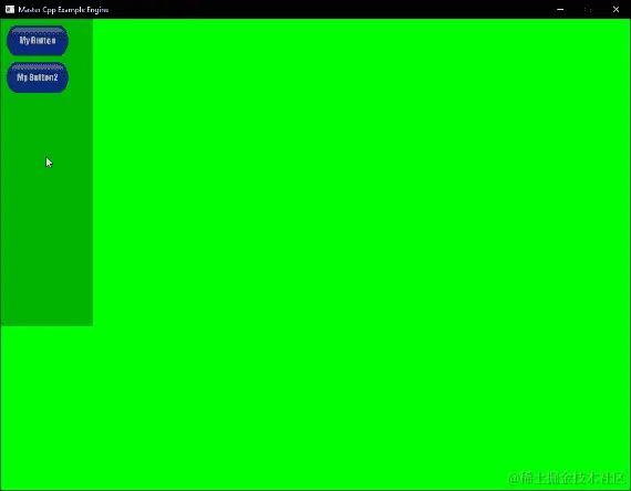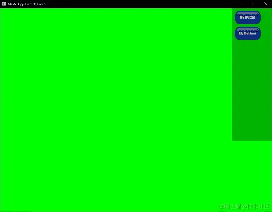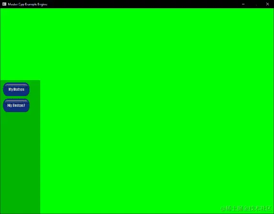 这就结束了绘制链。现在我们只需要将 GUI 的头部Draw()调用连接到主游戏的Draw()调用。为此,在ExampleScreen类的Draw()函数中添加一行调用 GUI 实例的Draw()方法: