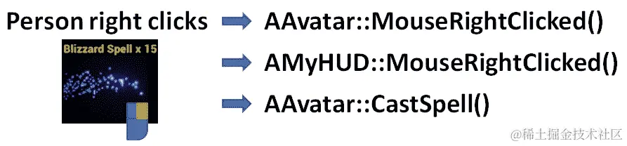 Widget,则HUD将通过调用AAvatar::CastSpell()向 avatar 发出施放该法术的请求。