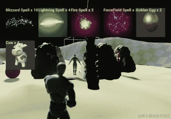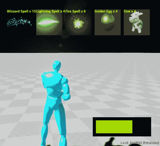 现在,在AAvatar::ToggleInventory()中,我们可以在屏幕上显示的Widget对象。通过查找Spells映射来记住它应该施放的法术。