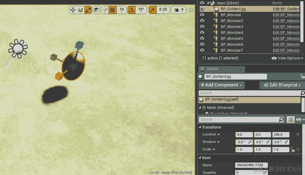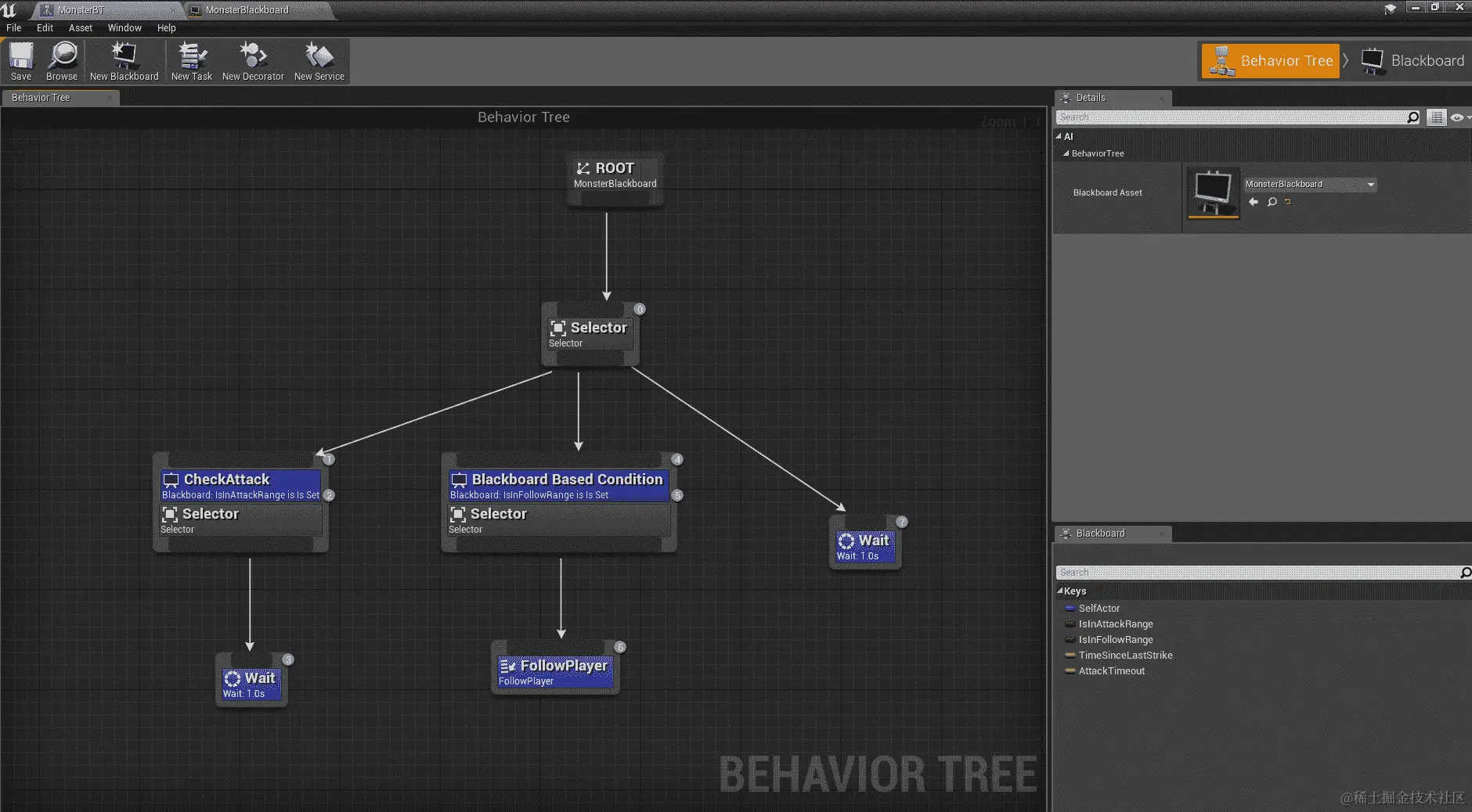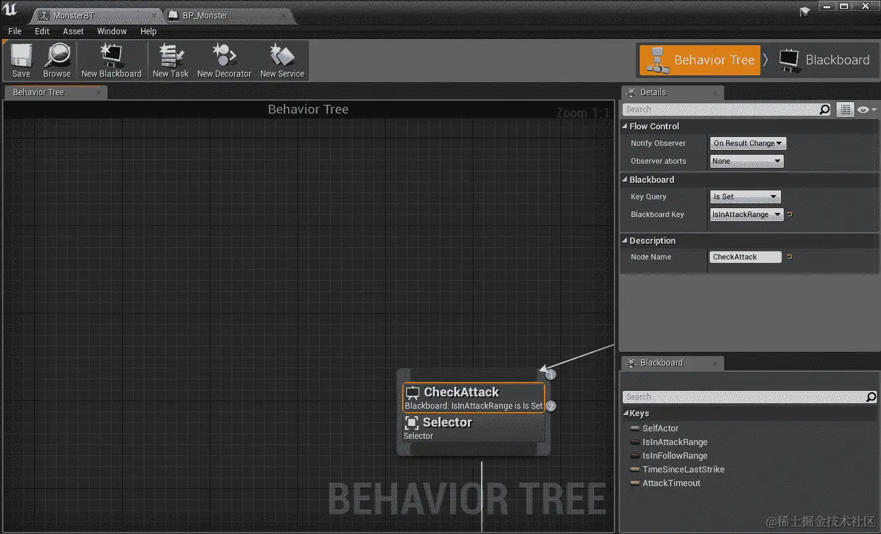 USphereComponents对象:其中一个是SightSphere——怪物能看到的距离。另一个是AttackRangeSphere,这是它的攻击范围。AttackRangeSphere对象始终小于SightSphere。