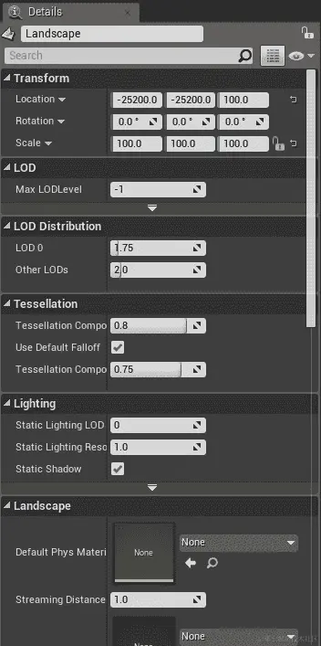 - 在您的灰色瓷砖景观对象的任何位置单击。在右侧的详细信息面板中,您将看到它填充了信息,如下面的屏幕截图所示: