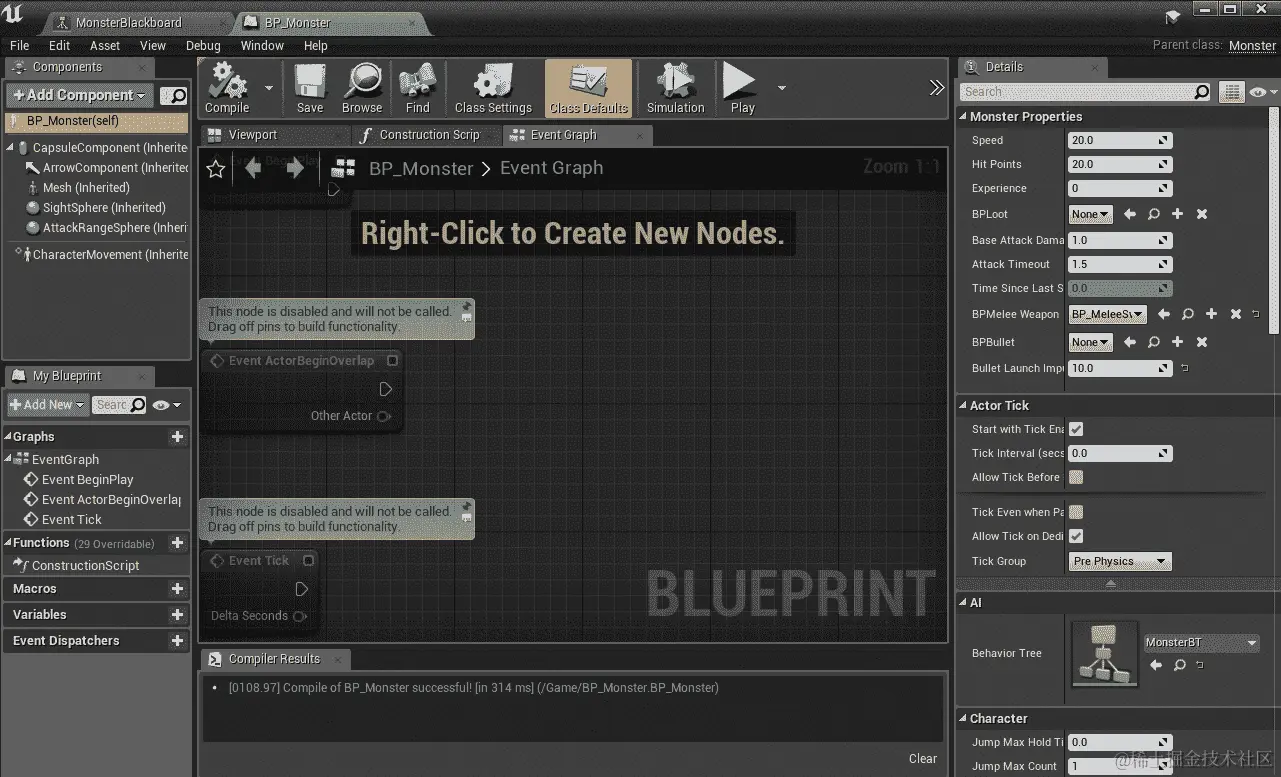 UPROPERTY(EditAnywhere, BlueprintReadWrite, Category = MonsterProperties),以便可以在蓝图中更改怪物的属性。这是你应该在Monster.h中拥有的内容: