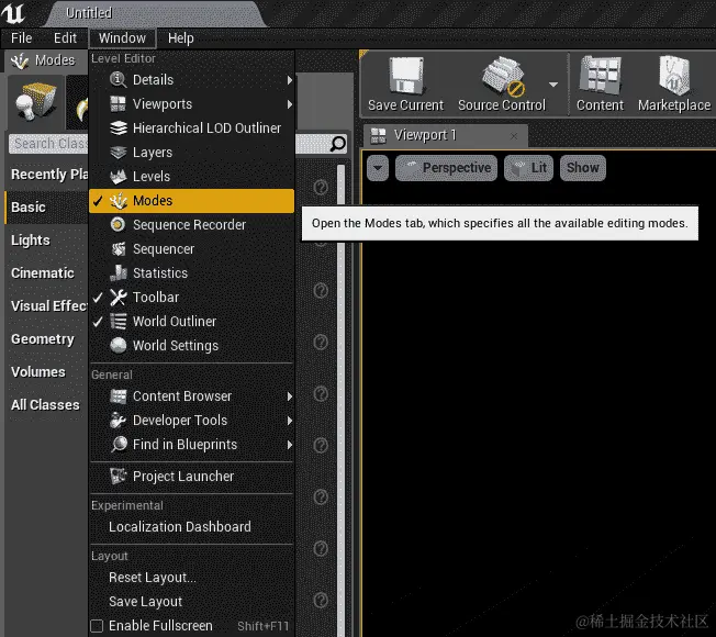 要创建景观,我们必须从模式面板中工作。确保通过导航到窗口|模式显示模式面板: