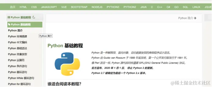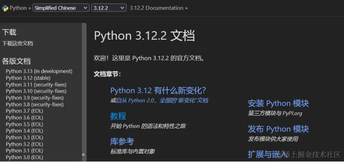 - Python 的官方文档包含了详细的教程、参考和库文档,是学习 Python 编程语言的权威指南之一
