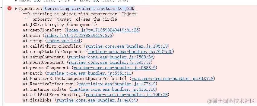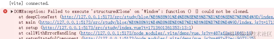 结果报错了,显示structuredClone无法克隆函数。那去掉函数再试一下: