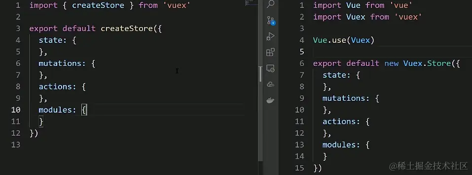 - 无需再通过 Vue.use(vuex) 形式挂载