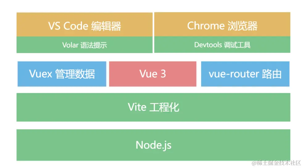 环境准备阶段,我们基于Vite 2和Vue 3搭建了我们项目的初始化框架,包含文件规范、工程化、路由和开发的基础配置,后面我们所有的代码都会在这个架构基础之上进行添加。你可以理解环境准备阶段是给Vue 3提供装备的过程,vue-router提供路由的管理、Vuex管理数据流、VS Code+Chrome+Vite则提供了极致的开发调试体验。
