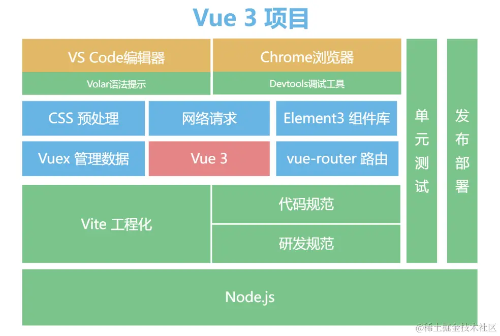 之前语法演示直接使用script引入Vue 3,从而在浏览器里实现所有调试功能。但实际项目中,使用专门调试工具。在项目上线之前,代码也需打包压缩,并考虑到研发效率和代码可维护性,所以在下面,需建立一个工程化项目实现这些功能。