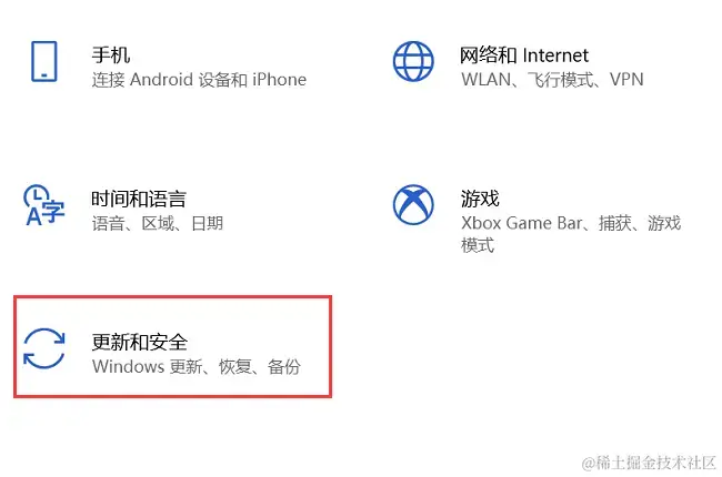 (1)打开【设置】,找到并点击【更新和安全】 ;