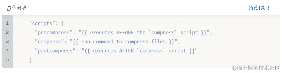 你script 的名称前面加上 pre 或者 post,那么当运行这个命令的时候,pre 和 post 会自动在这个命令之前或者之后运行。