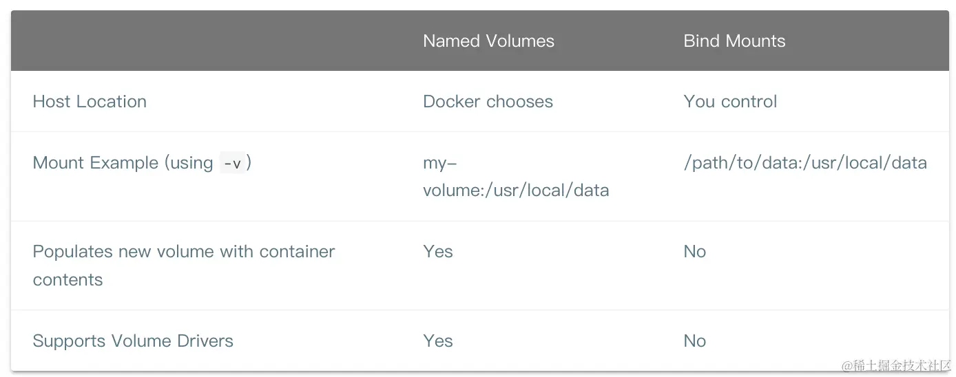 二者都能持久化容器数据,挂载主机目录方式能让我们控制持久化数据在主机的存放路径,这对于类似前端调试映射文件等场景很有用。