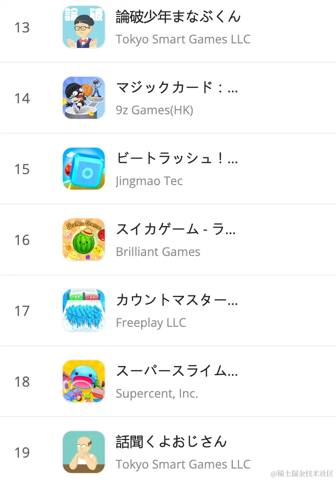 可以说看完【話聞くよおじさん(听我说,老头)】的种种营销手段,笔者对它背后的研发公司可以说期待值拉满了。根据广大大抓取数据显示,【話聞くよおじさん(听我说,老头)】是由日本手游公司Tokyo Smart Games于2023年12月4日正式发行。