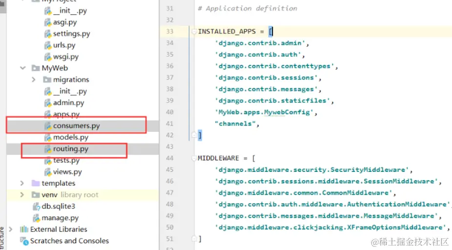 然后,创建一个名为routing.py的新文件,在其中定义WebSocket路由: