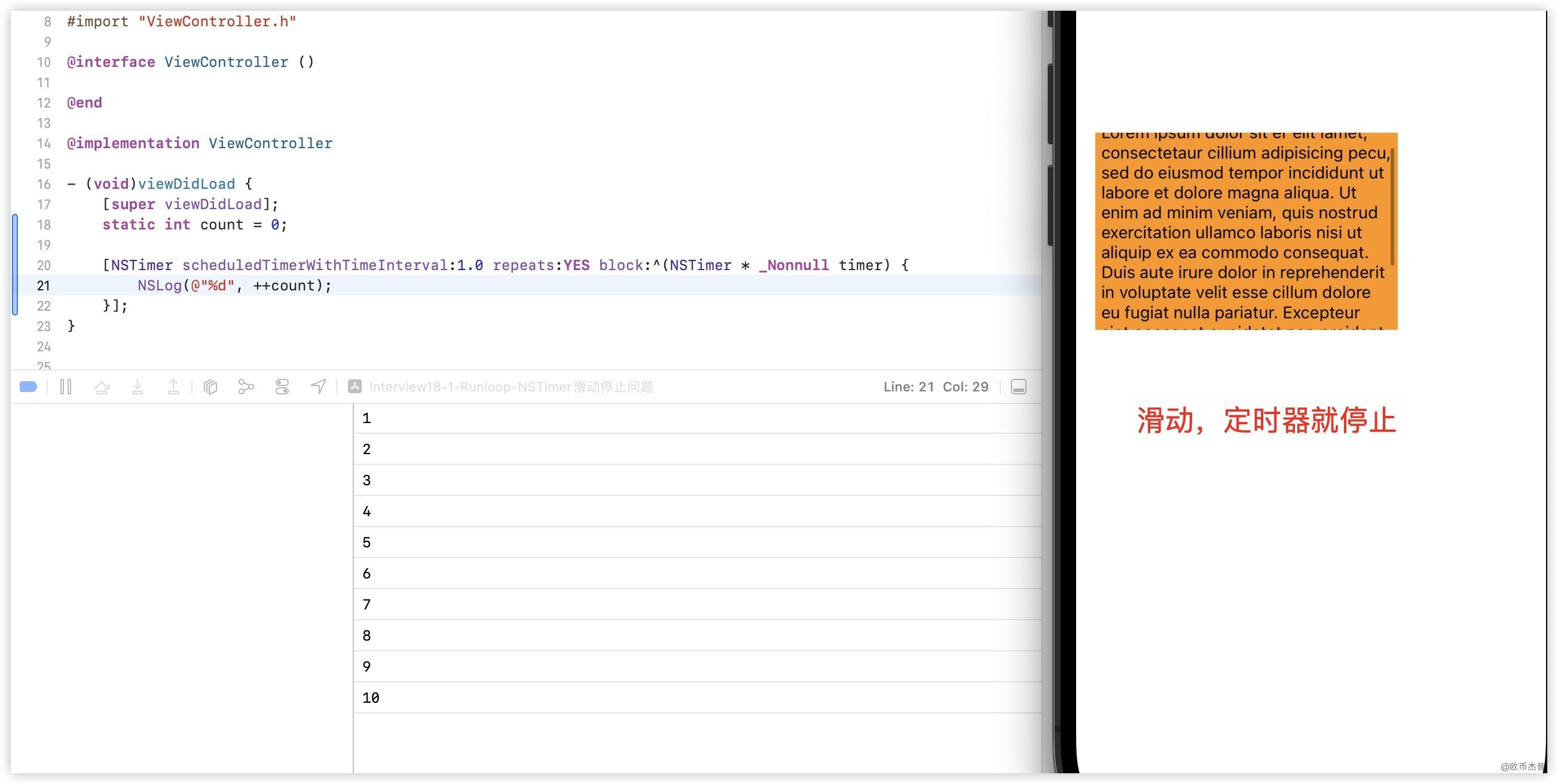 当scrollView 滚动时,定时器就停止了